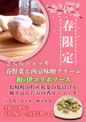 "西京みそ" を洋風のクリームソースに加え和風な "さくらニョッキ" に合うソースに仕上げ日本人の心に響く一品です。