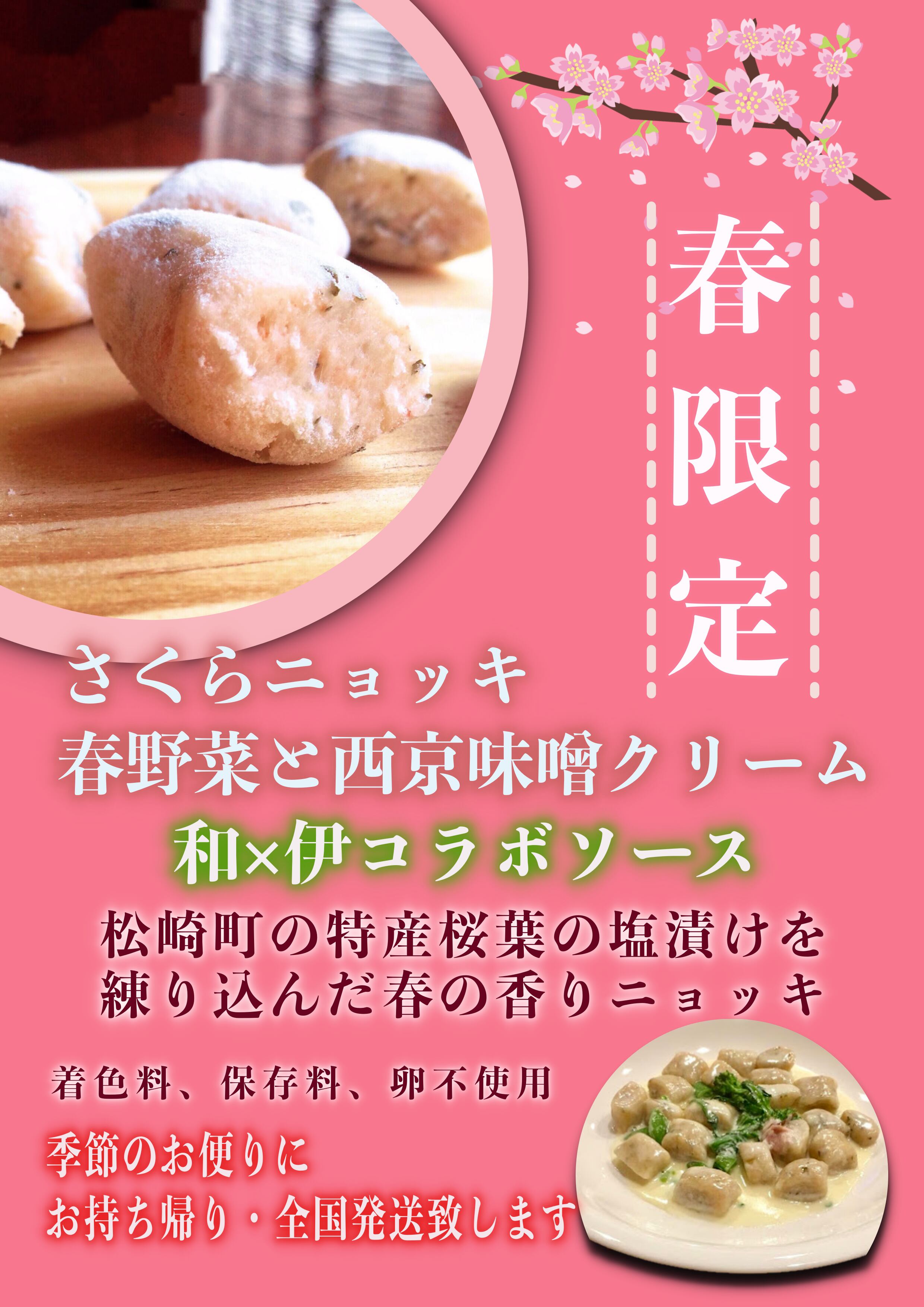 そこに住んでいる日本人は春になると桜を見てきっとそれぞれの故郷を思い出すことでしょう。そんなイタリアに住む日本人が口にすると少しでも故郷日本を懐かしく思い出すニョッキが出来ないだろうか? そんなニョッキを食べてもらいたい